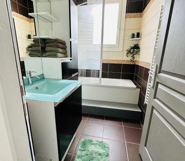 Providing a garden, Le Calme en Hyper-Centre provides accommodations in Pont-lʼÉvêque. Both free Wifi and parking on-site are available at the apartment free of charge. Trouville-Deauville SNCF Railway Station is 7.9 miles from the apartment and Port Morny is 8.4 miles away. The apartment is composed of 2 separate bedrooms, a living room, a fully equipped kitchen with an oven and microwave, and 1 bathroom. Towels and bed linen are provided in the apartment. The accommodation is non-smoking. Trouville Casino is 8.5 miles from Le Calme en Hyper-Centre, while Deauville Casino is 8.8 miles away. Deauville - Normandie Airport is 6.8 miles from the property.