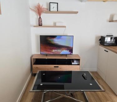 Le carrefour des vallées offers accommodations in Tarascon-sur-Ariège, 2 miles from Lombrives Caves and 3.2 miles from Bedeilhac Cave. Featuring a garden, the property is located within 21 miles of Col de la Crouzette. Labouiche Underground River is 14 miles away and Montsegur Castle is 22 miles from the apartment. This air-conditioned 1-bedroom apartment comes with a fully equipped kitchen, a seating area, a dining area, and a cable flat-screen TV. Guests can take in the views of the mountain from the terrace, which also has outdoor furniture. For added privacy, the accommodation features a private entrance. Niaux Cave is 3.9 miles from the apartment, while Foix Castle is 10 miles from the property. Carcassonne Airport is 56 miles away.