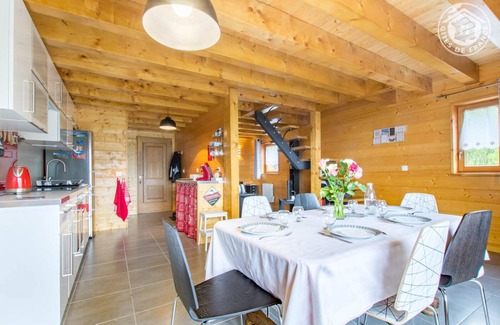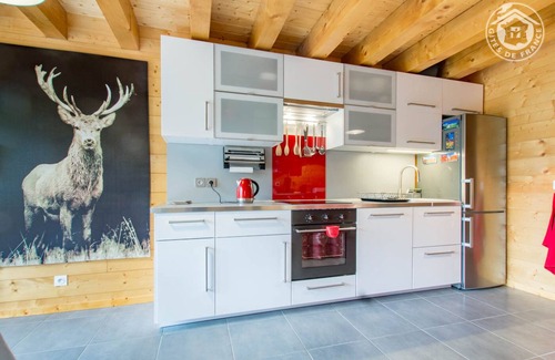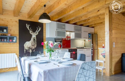 Chalet with 2 adjoining gîtes. Common entrance with storage for shoes / skis. Living room (stay-kitchen-living room). 1 WC. Upstairs: 3 bedrooms (2 bunk beds / 2 bedrooms with a double bed, shower room, separate toilet, large terrace with garden furniture and BBQ. WIFI internet connection. Linen included + beds made + towels included. Contemporary chalet enjoying an immediate environment of quality in a quiet and well exposed residential hamlet. Quality services and facilities. Very good comfort. Pleasant private terrace with magnificent views over the valley.