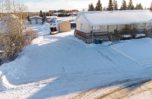The two bedrooms on the main floor have queen beds, and the two bedrooms in the basement have king beds. There is also a single folding bed available for additional guests. Laundry machines are found in the basement bathroom and fast, reliable wifi is available throughout the property. There is also ample parking for trucks & trailers, as well as a block heater plug-in available in winter months.