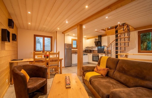 Designed for your comfort, our chalet has many modern amenities. You will appreciate the underfloor heating, the large shower and the master bedroom with access to the garden. Upstairs, a charming attic bedroom offers three single beds.