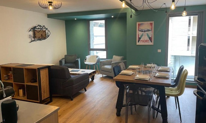 LE CHOUCAS - LA MONGIE offers accommodations in Bagnères-de-Bigorre, 28 miles from Lourdes Train Station and 30 miles from Basilica of Our Lady of the Rosary. Among the facilities at this property are a shared kitchen and a concierge service, along with free Wifi throughout the property. The apartment has ski storage space. Providing a balcony and mountain views, the spacious apartment includes 1 bedroom, a living room, cable flat-screen TV, an equipped kitchen, and 3 bathrooms with a walk-in shower and a bath. Guests can enjoy a meal on an outdoor dining area while overlooking the city views. For added privacy, the accommodation has a private entrance and soundproofing. A mini-market is available at the apartment. Guests at the apartment will be able to enjoy activities in and around Bagnères-de-Bigorre, like hiking and walking tours. Skiing and cycling can be enjoyed nearby, while a ski equipment rental service, ski-to-door access and a ski pass sales point, are also available on-site. Pic du Midi Cable Car is a 3-minute walk from LE CHOUCAS - LA MONGIE, while Pic du Midi is 3.4 miles away. Tarbes Lourdes Pyrénées Airport is 29 miles from the property.