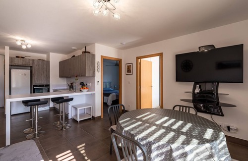 Comfortably accommodating 4 to 6 travellers, you will have a living room with a double sofa bed and a fully equipped kitchen, two beautiful bedrooms with double beds, a bathroom with shower, as well as a furnished terrace, from where you can enjoy the quietness of the place and the sublime view of the mountains. Sheets and towels not provided. See you soon!