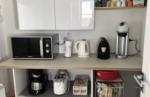 This 4-bedroom, 4-bathroom rental features a living room, a dining area, a sofa bed, and a BBQ grill. Bathroom amenities include a hair dryer, towels, and toilet paper. The kitchen is equipped with an oven, a stovetop, and a refrigerator, as well as a coffee maker, an electric kettle, and a microwave.