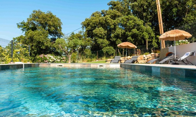 7.9 miles from Chateau de Grimaud in Le Plan-de-la-Tour, Le Clos des Eucalyptus offers accommodations with access to beauty services, solarium, and open-air bath. This property offers a pool with a view, free Wifi, and free private parking. Guests can use the spa facilities and wellness packages, or enjoy garden views. The apartment complex will provide guests with air-conditioned units offering a wardrobe, a coffee machine, an oven, a microwave, a safety deposit box, a flat-screen TV, a terrace, and a private bathroom with a shower. There's also a dining area and a fully equipped kitchen with a toaster, a fridge, and a stovetop. At the apartment complex, the units include bed linen and towels. A selection of options including fresh pastries, fruit, and juice are available for breakfast, and breakfast in the room is also available. There is an on-site coffee shop. Guests at the apartment can enjoy cycling and hiking nearby, or make the most of the garden. Le Pont des Fées is 8 miles from Le Clos des Eucalyptus, while Saint-Raphaël Valescure Train Station is 21 miles from the property. Toulon - Hyeres Airport is 34 miles away.