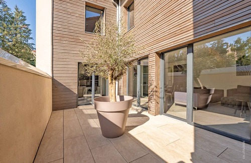Our townhouse is located in a closed enclosure, with 2 secure parking spaces in our private courtyard. It overlooks a listed wooded garden, in the heart of Mâcon.