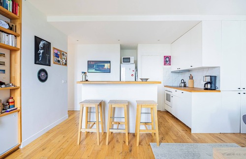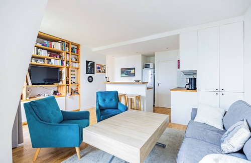 Discover our modern and comfortable 40m² flat, located on the 7th and top floor with lift in the 13th arrondissement of Paris. Close to the Latin Quarter, it offers uninterrupted views over the gardens, the rooftops of Paris and the Montparnasse Tower.