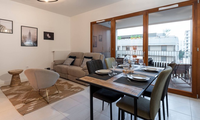 We offer you Le Conflu Home for rent in Lyon, located between the Rhône and Saône rivers in a recent building dating from 2023. The apartment is on the 3rd floor (with elevator) and is 59 m² in size, comfortably accommodating up to 4 travelers. All you have to do is put down your luggage!