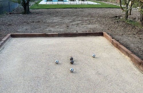 Unwind on the shaded terrace or in the serene garden featuring a refreshing pool. Host lively evenings around the petanque court.
