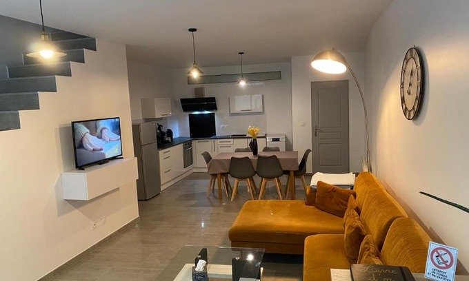 Le Cristallin gîte plein coeur de Chablis offers accommodations in Chablis, 13 miles from Auxerre Clock Tower and 13 miles from Abbé Deschamps Stadium. During your time at this recently renovated apartment, which dates back to 19th century, you'll have access to free Wifi. Vézelay Basilica is 30 miles away and Auxerrexpo Convention Centre is 11 miles from the apartment. This apartment includes 2 bedrooms, a living room and a flat-screen TV, an equipped kitchen with a dining area, and 1 bathroom with a walk-in shower and a washing machine. Towels and bed linen are featured in the apartment. For added privacy, the accommodation has a private entrance and soundproofing. St. Germain Abbey is 13 miles from the apartment, while Auxerre Train Station is 12 miles away. Châlons Vatry Airport is 87 miles from the property.
