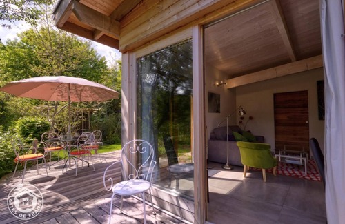 Detached house located on the property of the hosts. Entrance open to the living room with a convertible sofa (sleeps 2 people 140 x 200 cm), 1 bedroom (1 double bed 140 x 200 cm). Bathroom (shower) with infrared sauna. Pleasant sunny terrace without vis-à-vis. Eco-habitat Le Farou has obtained the Gîte Panda qualification for its landscape integration and the efforts made by the owners in terms of ecology (local supply, choice of a green electricity supplier). The site is also certified by the Bird Protection League. Come and regenerate yourself in this refuge at the gates of the City of the Dukes of Savoy.
