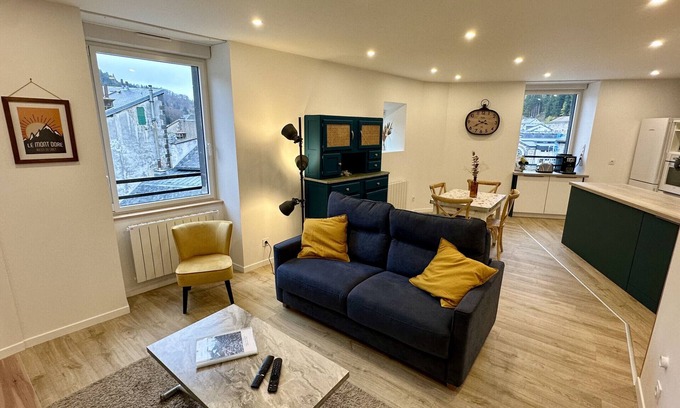 Cosy Apartment in the Heart of Mont-DoreWarm, bright and ideally located in the centre, this apartment is perfect for a relaxing stay as a couple, with family or friends. Nestled on the 3rd floor (no lift), it offers comfort, authenticity and practicality at the foot of the mountains. 2 bedrooms up to 4 people• 1 bedroom with Queen size bed (160x200)• 1 bedroom with double bed (140x190)Optimal comfort for a couple with children or a small group of friends. Modern bathroomSpacious and pleasant shower to relax after a day of hiking or skiing. Open Equipped Kitchen• Dishwasher, oven, microwave• Washing machine, complete utensils• Open kitchen overlooking a friendly living room Practical Equipment• Wi-Fi• Iron• Cosy and comfortable atmosphere in all seasons Ideal location• Right in the city centre• A stone's throw from the thermal baths, hiking trails, ski area and golf courseEverything is within walking distance! Practical information• Bed and towel linen not provided (rental via La Conciergerie du Sancy)• End of stay cleaning optional• Treatment package from €800 Book quickly this cosy cocoon in the heart of Mont-Dore, and enjoy a stay between nature, wellness and discoveries!