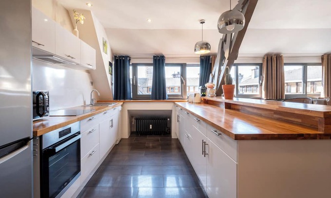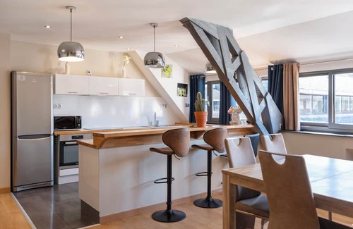 This spacious apartment is located in the city center of Metz, close to the highway between Nancy and Luxembourg. You will also be near many points of interest: The Jardin des Tanneurs is just a 3-minute walk away, the Metz Cathedral 8 minutes, and the St-Jacques shopping center a mere 1-minute walk from the building. Enthusiasts will be delighted to learn that the famous Centre Pompidou de Metz is an 18-minute walk away.