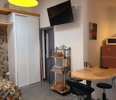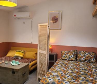 Featuring free bikes, le jardin de MiMi features accommodations in Lézignan-Corbières. This property offers access to a terrace and free private parking. Outdoor seating is also available at the apartment. This air-conditioned 1-bedroom apartment comes with a fully equipped kitchen, a seating area, a dining area, and a flat-screen TV. Towels and bed linen are available in the apartment. For added privacy, the accommodation has a private entrance and soundproofing. Guests can relax in the garden at the property. Abbaye de Fontfroide is 11 miles from le jardin de MiMi, while Reserve Africaine de Sigean is 23 miles from the property. Carcassonne Airport is 29 miles away.