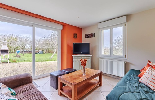 "Le Lanchon", 3-room house 94 m2 on 2 levels. Beautiful and cosy furnishings: living/dining room with dining table, satellite TV, radio and DVD. Exit to the garden. Open kitchen (oven, dishwasher, 4 induction hot plates, toaster, kettle, microwave, freezer, electric coffee machine). Shower, sep. WC. Upper floor: 1 room with sloping ceilings with rooflight with 1 bed (90 cm, length 190 cm), 1 french bed (160 cm, length 200 cm). 1 room with sloping ceilings with rooflight with 1 french bed (140 cm, length 190 cm). Sep. WC. Oil heating. Patio. Terrace furniture, barbecue, deck chairs (4), box-room. Facilities: washing machine, iron, children's high chair, baby cot. Internet (WiFi, extra). Please note: non-smoking house. Maximum 1 pet/ dog allowed.