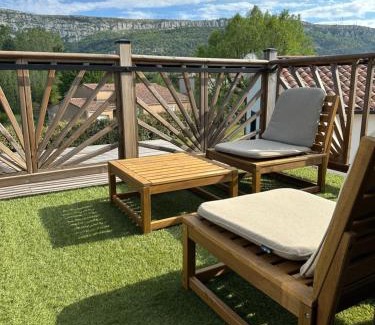 Le LODGE De La Sainte Baume offers accommodations in Plan dʼAups, 24 miles from Circuit Paul Ricard and 26 miles from La Timone Metro Station. This chalet provides air-conditioned accommodations with a balcony. There's a picnic area and guests have access to free Wifi, free private parking, and an electric vehicle charging station. Providing a terrace and mountain views, the chalet includes 1 bedroom, a living room, satellite flat-screen TV, an equipped kitchen, and 1 bathroom with a shower. Towels and bed linen are provided in the chalet. The property has an outdoor dining area. Guests at the chalet will be able to enjoy activities in and around Plan dʼAups, like walking tours. There is a garden with a barbecue at this property, and guests can go cycling and hiking nearby. Castellane Metro Station is 26 miles from Le LODGE De La Sainte Baume, while Marseille Chanot Exhibition and Convention Center is 26 miles away. Marseille Provence Airport is 41 miles from the property.