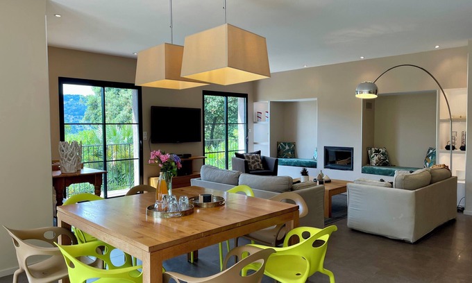 Rated 5 stars meublé de tourisme, the Loft du Château Clément is a villa with private pool and hammam, a modern, contemporary 4-bedroom vacation home just a few minutes from Aubenas.