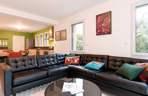 The Cocoonr/Book&Pay agency offers this charming 125 m² house for rent in Dinard, nearby from the beach, which can accommodate up to 8 travellers. It has a lovely 42 m² living room, a fully equipped kitchen, four bedrooms, two bathrooms and a 200 m² garden. Wifi (fibre optics), bed linen and towels included, we're waiting for you!