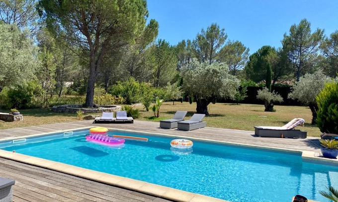 Le Mas de la Gran’ Voile, a property with a seasonal outdoor swimming pool and a terrace, is set in Rocbaron, 33 km from Circuit Paul Ricard, 33 km from Toulon Train Station, as well as 34 km from Zenith de Toulon. This bed and breakfast has a private pool, a garden and free private parking. The bed and breakfast is fitted with a flat-screen TV. There is a seating area, a dining area and a kitchenette complete with a microwave, a fridge and a stovetop. Villa Noailles Art Centre is 34 km from the bed and breakfast, while Barbaroux Golf Course is 21 km from the property. The nearest airport is Toulon - Hyeres Airport, 40 km from Le Mas de la Gran’ Voile.