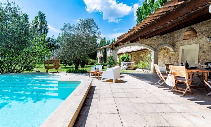 Le Mas de Massillan, heated swimming pool, petanque court, Uchaux has 5 Bedrooms , 4 Bathrooms, and max occupancy of 11 people. The minimum rental for this property is 1 nights, but this can change depending on the season you plan on staying. Previous guests have given good rated it, and VRBO labeled it a top-rated House because of the excellent services rendered by the owner or manager of this House, and has consistently provided great experiences for their guests. Most families or guests that use it recommend it to their friends and some of them are repeat guests. House has a friendly neighborhood, and the Uchaux has interesting places to visit. If you want to learn more about the House in Uchaux, such as places to visit and things to do nearby, you can check below to learn more.