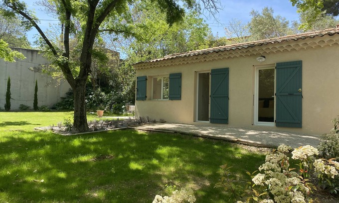 Nous mettons en location saisonnière notre maisonnette indépendante située dans notre propriété familiale. Nichée au fond du vallon de Toulouse à Marseille, elle se situe au pied des collines du parc national des calanques directement accessibles à pied ou en vélo. Les calanques sont accessibles en voiture à 15 min environ. Pour autant le centre de Marseille, le vieux port et le MUCEM sont à 20min en voiture. Le joli port de Cassis est à 20 min également par le col de la Gineste. Le centre d'Aix en Provence est à 30 min. D' une superficie de près de 50 m2 , la maisonnette est située sur une partie indépendante de notre propriété. Elle offre toutes les conditions d' un séjour agréable pour 2,3 ou 4 personnes bénéficiant d'un grand lit (180×200), d un canapé lit en lin confortable pour deux personnes (160x200), d'une kitchenette équipée et d'une salle de douche de bonnes dimensions. -