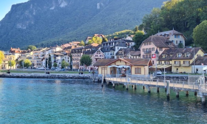 Semi-detached house "Le Mas Saphir", 2 storeys. In a quiet, sunny position in the residential district, 1 km from the lake. Private: small, beautiful garden (not fenced) with lawn, parking at the house. Shop 1 km, restaurant 750 m, railway station "Bouveret" 850 m, thermal baths "Lavey-les-Bains" 32 km, bathing lake "Lac Léman" 1 km. Golf course (9 hole) 5.5 km, sailing school 1 km, walking paths from the house 1 m, cycle lane. Nearby attractions: Aquaparc, Swissvapeur Parc, Château de Chillon 13 km, Evian-les-Bains France 22 km, Fondation Pierre Gianadda, Martigny 46 km. Well-known ski regions can easily be reached: Portes-du-Soleil 40 km, Leysin 31 km, Villars 31 km. Well-known lakes can easily be reached: Lac Léman, Lac de Taney 17 km. Hiking paths: Torgon, Lac de Taney.