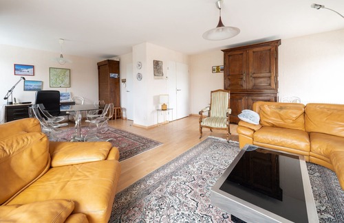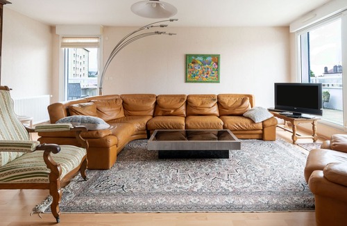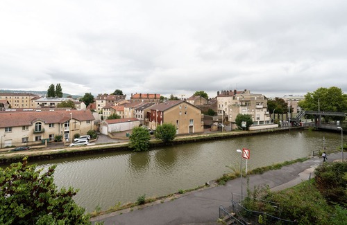 We propose to you to the rent, on the commune of Nancy, this charming flat of a surface of 150 m ² and being able to accomodate to 6 travellers. Located on the 4th floor (with lift), it consists of a nice living room of 50 m², a fully equipped kitchen, three beautiful bedrooms, two bathrooms and two terraces, one of which has a view over the canal. Wifi, sheets and towels included, we are waiting for you!