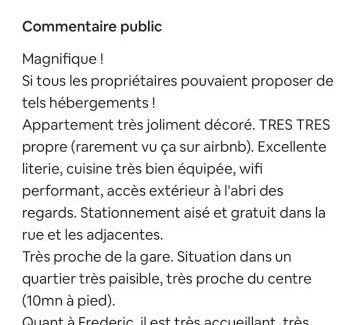 This 5 Bedrooms Apartment is suitable for tourists and travelers. It has several amenities that would guarantee your comfort. These amenities include: Child Friendly, Internet, Security/Safety, and several others. This is a 4 star rated property and has over 47 reviews with the average score of 9.5 . Coming to Vichy and needing a place to stay? Be it for work or for leisure, consider staying at this Apartment for your next visit, you will surely love it.