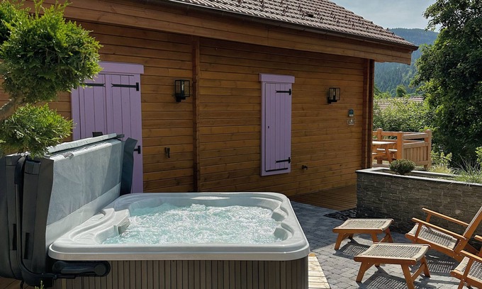 Relax in the hot tub (enjoy the outdoor furniture!) or sip a drink in the garden of this chalet. As for the great indoors, you can come inside and enjoy the TV and stereo.