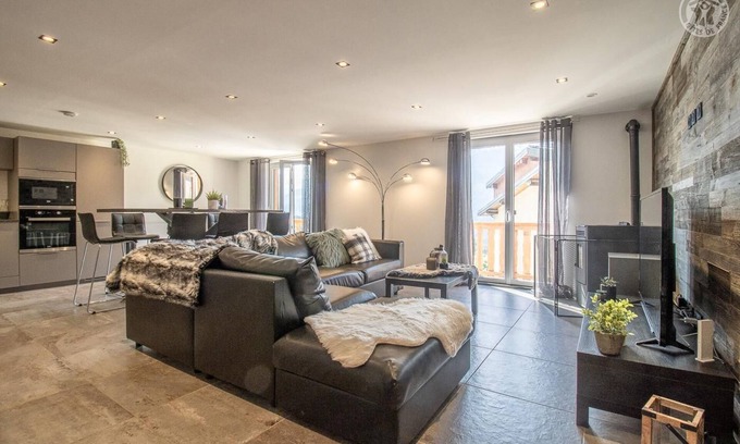 Apartment located on the 1st floor of a condominium including another accommodation rented year-round. Living room with open kitchen opening onto a balcony the width of the accommodation, two bedrooms without windows with private shower room (1 double bed 140x190 cm / 1 double bed 160x190 cm). Laundry in bathroom. TV connected. Bike room. Possibility of ski rental at preferential rates with free locker. Free parking in front of the apartment. Contemporary apartment enjoying a privileged location 100 meters from the Aussois ski slopes. Large bright and cozy living room. Immediate quality environment close to outdoor activities.