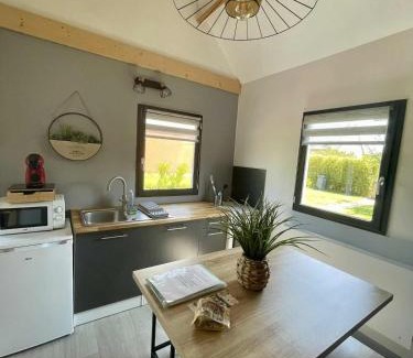 26 miles from La Cite de la Mer in Port-Bail-sur-Mer, Le petit Chalet provides accommodations with access to a hot tub. This beachfront property offers access to a terrace and free private parking. Guests can use a garden. With free Wifi, this 1-bedroom chalet offers a flat-screen TV and a kitchen with an oven and microwave. Guests can enjoy a meal on an outdoor dining area while overlooking the garden views. For added privacy, the accommodation features a private entrance. Tatihou Fort is 30 miles from the chalet, while Marais du Cotentin et du Bessin Natural Regional Park is 24 miles from the property. Caen–Carpiquet Airport is 65 miles away.
