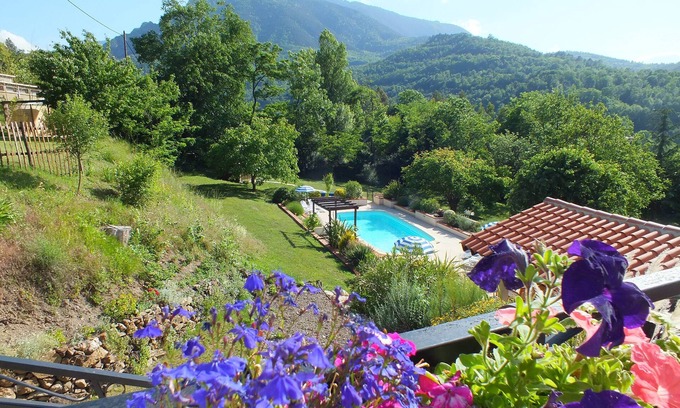 La Chataigneraie offers 3 well equipped gites along with en-suite B&B rooms, in the heart of the Pyrenees. We have 2 acres of gardens to explore, with a swimming pool, gym, boules court, bicycles and breath-taking mountain views. Sahorre has a bistro and a handful of small shops whilst the famous spa town of Vernet les Bains is less than 2 miles away, with a wider selection of shops, activities and restaurants. This stunning area is steeped in culture and history with several of France’s most beautiful villages within a short drive. A paradise for sports enthusiasts with a huge range of sports and activities available nearby – from mountain biking to white water rafting – even the most active group could find a different activity for every day! If you prefer to simply relax by the pool, the area is renowned as the sunniest in France with a glorious 320 days of sunshine every year. Beautiful at any time of year, 45 minutes from either beaches or ski resorts we really offer the best of both worlds.