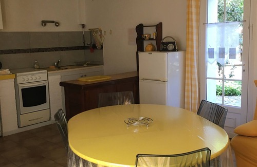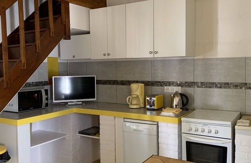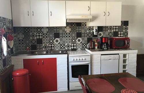 The Pivoine : Downstairs there is a kitchen (dishwasher) , a single room with telly and a very nice shower room ( with a wash machine ), separated toilets ; There is also a large bedroom with its own small shower room with toilets