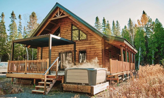 This property offers access to a balcony, free private parking, and free Wifi. Opening onto a terrace with quiet street views, the spacious chalet consists of 2 bedrooms. The air-conditioned chalet also provides a flat-screen TV, a fully equipped kitchen with an oven, a seating area, washing machine, and 1 bathroom with a hot tub, a bath, and a shower. The property has an outdoor dining area. Guests at Le Refuge can enjoy bike tours nearby, or make the most of the garden. Bagotville Airport is 57 miles away.