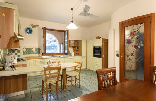 4-room apartment 150 m2, on the ground floor. Comfortable furnishings: living room with TV. 2 double bedrooms. 1 room with 2 beds. Large kitchen (oven, dishwasher, 4 gas rings, toaster, kettle, electric coffee machine) with dining table. Exit to the garden. Shower/bidet/WC, bath/shower/bidet/WC. Gas heating. Heating available only from 15.10. to 15.04. Terrace, patio. Terrace furniture, barbecue, deck chairs (6). Facilities: washing machine, children's high chair, baby cot for up to 2 year olds, hair dryer. Internet (WiFi, free). Parking (1 car). Please note: non-smokers only. Private entrance. IT103008C2K83OAIML