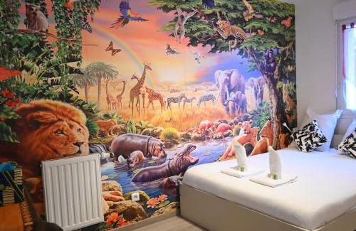 Providing a garden, Le Safari, proche Parc Disneyland, Astérix features accommodations in Villevaudé. This property offers access to a terrace and free private parking. Val d'Europe RER Station is 6.7 miles from the villa and Disneyland Paris is 8.6 miles away. With free Wifi, this 3-bedroom villa provides a cable flat-screen TV, a washing machine, and a fully equipped kitchen with a dishwasher and oven. Towels and bed linen are provided in the villa. The accommodation is non-smoking. Gare de l'Est is 17 miles from the villa, while Stade de France is 20 miles away. Paris - Charles De Gaulle Airport is 8.7 miles from the property.