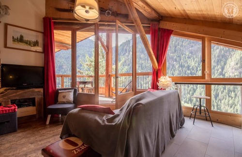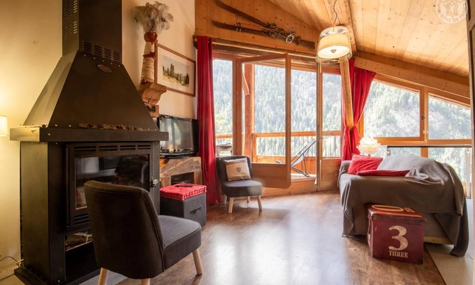 On the third and last floor of a condominium comprising several accommodations. Living room-kitchen open onto a terrace. 2 bedrooms (1 double bed 140x190 cm / 1 double bed 140x190 cm), mezzanine (2 single beds 90x190 cm), 1 bathroom (shower), 1 bathroom (bath), WC. Child's bed (80x160 cm) and travel cot on request (within the limit of 6 occupants, baby included). Ski room with boot dryer. Private covered parking space. Stroll on its terrace facing the forest or join the many trails and hiking trails available to you thanks to the nearby cable car, enjoy a warm evening watching the snow fall or rest in cozy rooms. .. Le Solan is one of those refuges under the roof typical of Savoy. We appreciate the cozy atmosphere that emanates from it, the proximity to leisure activities, to the Baroque heritage (with the Sanctuary of Notre-Dame des Vernettes, not to be missed!), to the shops. An address to try in winter and summer!
