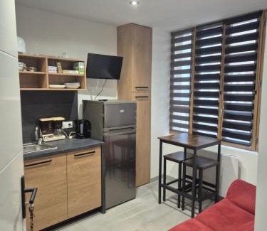 Le studio du soubeyran offers accommodations in Marvejols, 15 miles from Sabot Golf Course. The apartment includes 1 bedroom, a fully equipped kitchen with a dishwasher, and an oven, as well as a coffee machine. A flat-screen TV is featured. The accommodation is non-smoking. Rodez - Aveyron Airport is 58 miles away.