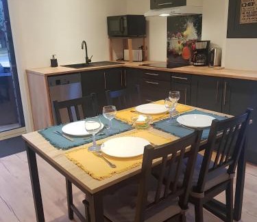 Le Ty Gîte - Sud Morbihan offers accommodations in Théhillac, 30 miles from The Heritage Museum Ecomusée and 30 miles from La Baule-Escoublac Train Station. The air-conditioned accommodation is 28 miles from Saint-Nazaire Train Station. The chalet also provides free Wifi, free private parking, and facilities for disabled guests. Providing a terrace with quiet street views, this chalet also offers a TV, a well-equipped kitchen with a dishwasher, an oven, and a microwave, as well as 1 bathroom with a shower and a hair dryer. For added privacy, the accommodation features a private entrance. There is a garden with a barbecue at this property, and guests can go cycling and hiking nearby. Atlantia Convention Center, La Baule is 31 miles from the chalet, while La Baule Casino is 31 miles away. Montoir Airport is 24 miles from the property.