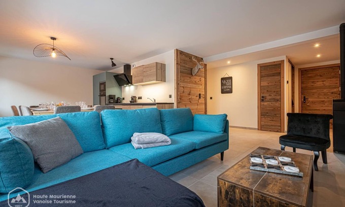 Gite located on the ground floor of the house (on one level from the parking lot) comprising a living room-kitchen lounge area (connected sound bar), pellet stove (manual refill), 1 cabin bedroom (2x2 bunk beds 90x200 cm), 1 bedroom (1 double bed 160x200 cm composed of 2 single beds 80x200 cm), 3 bedrooms each with 1 double bed 160x200 cm and a private bathroom (shower), a bathroom (shower), 2 separate toilets. Private laundry room (washing machine and dryer) outside the cottage, on the garden level. Terrace with private SPA (bath towels reserved for the spa are not provided by the owner, it is up to the customer to bring what is necessary). Free and shared sauna on the ground floor of the house (access arrangements, contact the owner) At the entrance to a hamlet, the residence comprising 5 apartments is located 300 m from the ski lifts and 2 km from shops, stores and services. In winter, the shuttle stop 100m away will make your travels between Lanslebourg and Lanslevillard easier. The entrance to the residence offers a beautiful space for private ski rooms, equipped with a boot dryer. A few parking spaces are possible in front of the house with a common electric charging station outside. 50 m from the house, a large free public car park will allow you to park easily.
