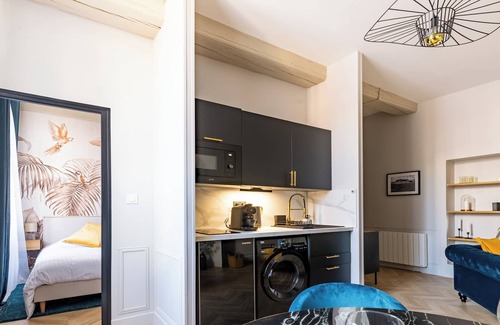 Located in Dijon, this 1-bedroom, 1-bathroom apartment lets you experience it all. Fans of nature and the outdoors will love being 4 minutes by car from Darcy Square and 3 minutes from Arquebuse Gardens. Palace of the Dukes of Burgundy is an easy 9-minute walk away and Museum of Fine Arts is also a quick 9-minute walk away.