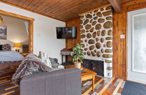 A living room and a fireplace are featured at this 1-bedroom, 1-bathroom rental. Bathroom amenities include a hair dryer, towels, and toilet paper. Prepare a home-cooked meal in the kitchen, complete with an oven, a stovetop, and a refrigerator, as well as a coffee maker, an electric kettle, and a microwave.