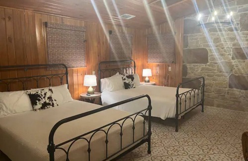 Lea Lou Lodge on Broad St. offers one block off square Mason lodging, in a historic 3400 square foot mason sandstone home renovated in 2022 by owner Andy Smith. The Boutique Hotel offers 5 individual full bath suites with shared kitchen, dining, and living room or entire house rental.