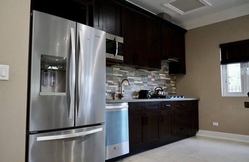 Leah's Heaven is your "Home Away From Home" a heavenly getaway! Lovely apartment in the beautiful & quiet Sandrania Gardens community. Close proximity to the beach, restaurants, shops, and pharmacy. Not to mention the world famous fish fry at Arawak Cay! This beautifully spacious apartment situated in a lush tropical setting is fully air-conditioned and furnished boasting three (3) bedrooms with two & a half (2.5) bathrooms. A large open concept living, dining/kitchen combination.