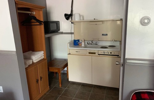 Enjoy elevated comfort in our spacious King Deluxe Room, featuring a king-size bed and a fully equipped kitchenette complete with a stovetop, microwave, refrigerator, sink, coffee maker, and essential cooking utensils—ideal for guests who love the option to cook and dine in. The room also includes a private bathroom, flat-screen TV, and a cozy, relaxing atmosphere. Start or end your day with a breathtaking mountain view right outside your window, providing the perfect backdrop for your getaway