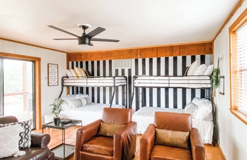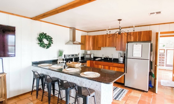 Get ready to relax in this superb 1-bedroom farmhouse in Boerne. This adorable property features a cozy living room with 2 bunk beds and a sofa bed, perfect for unwinding after a day of exploring. The bedroom boasts a comfortable king bed, ensuring a restful night's sleep. With modern amenities like WiFi, AC, and a washing machine, guests will have everything they need for a comfortable stay. Enjoy your time in Boerne at our charming farmhouse.