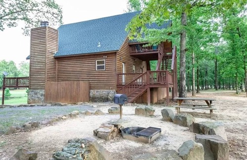 Legacy Lodge at Tannenbaum is within a mile of a boat launch on Greers Ferry Lake. Outside has a fire pit and a grill area for an open fire, plus a charcoal grill.