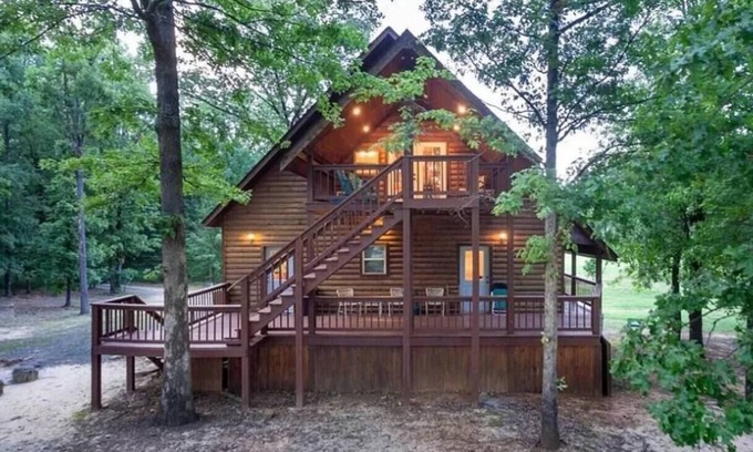 This three story cabin sits on Tannenbaum Golf Course, between holes #4 and #5. Tannenbaum Golf Course has been named one of Arkansas' Best Kept Secrets in golf Courses and one of the top 5 places to play in Arkansas.