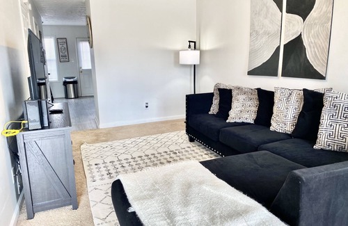 Legacy Pad! Spacious 2 bed townhome with modern vibes is located in Clarksville. Legacy Pad! Spacious 2 bed townhome with modern vibes provides accommodation, featuring Air Conditioner, Pet Friendly, TV, among other amenities. This House features Air Conditioner, Pet Friendly, TV, to make your stay a comfortable one.