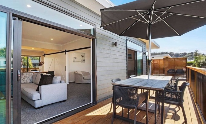 Fresh sea air just 400m away! Located in the heart of Waihi Beach just a short walk to shops and the beach. Ideal for 1 or 2 families to kick back and enjoy.